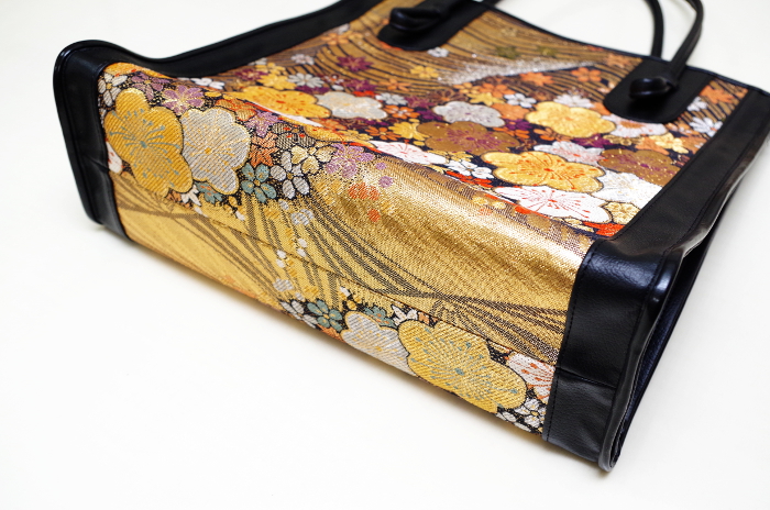 • 帯の柄を活かしやすい形。帯幅が狭い帯でも、縦向けの配置でバッグに出来ます。